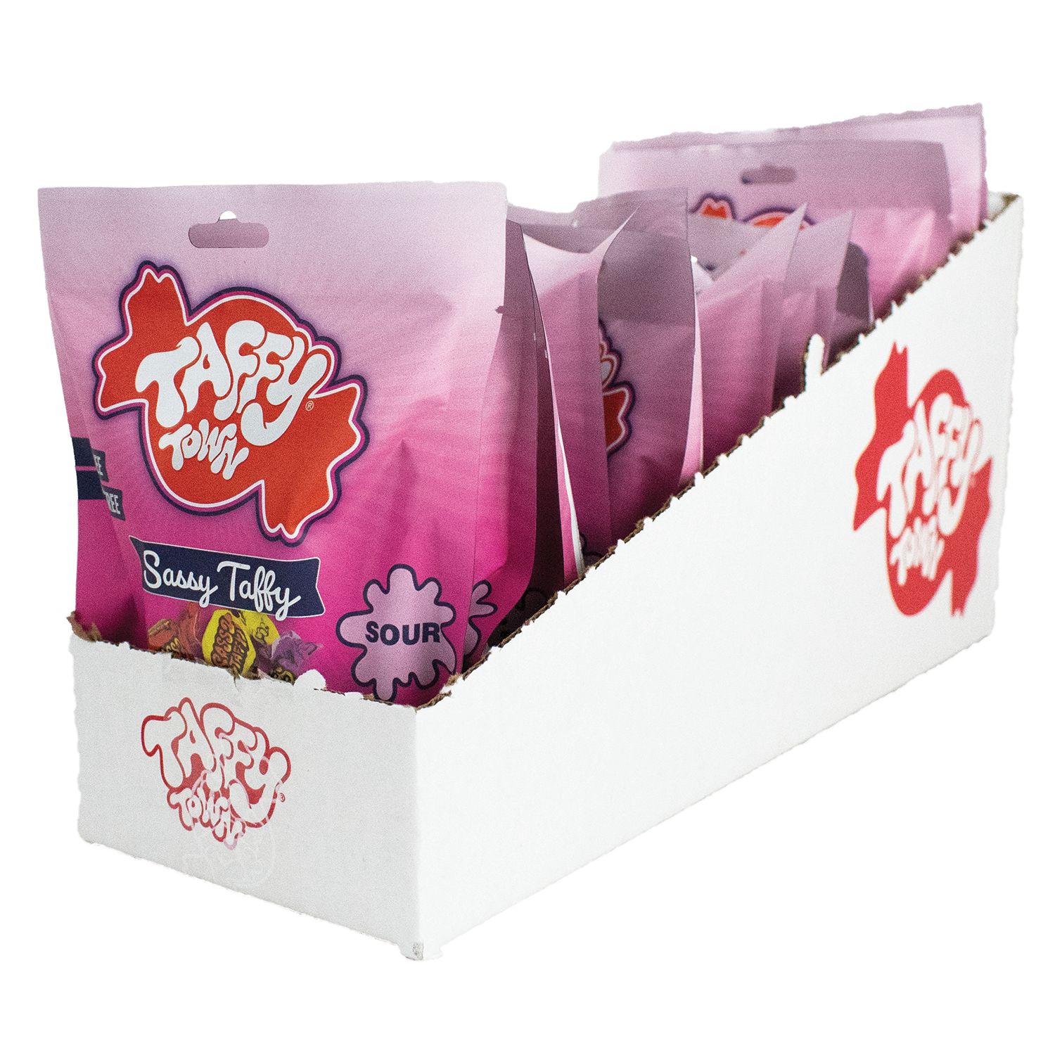 Tangy and slightly sour fruit flavored taffy in bright andcolorful packaging that’s impactful and eye catching. Sassy Taffy is a longtime popular product of Taffy Town.Sour Melon is an addicting addition to the line.